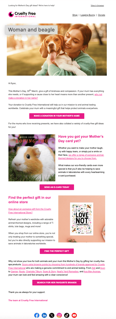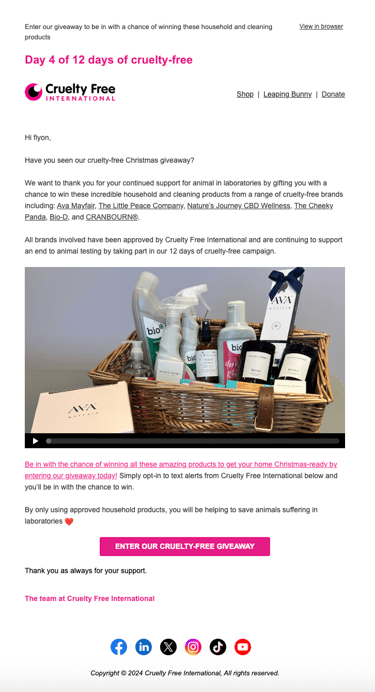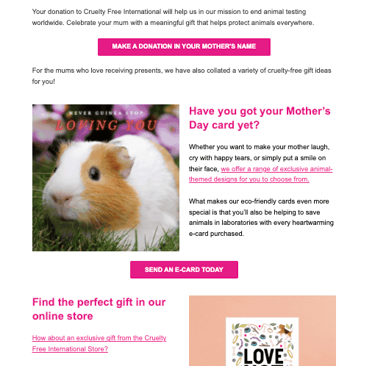 Through leading Cruelty Free International's digital communications, the aim of my role is to educate, challenge and inspire people worldwide to help create a cruelty-free world — whilst increasing support and brand awareness.