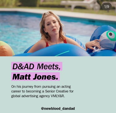As well as driving traffic from D&AD's social platforms to the D&AD website. I have written editorial pieces for the D&AD Meets series: which introduces up-and-coming creatives to the industry. From outreach and interviewing, to writing and creating social content, here are some examples of D&AD Meets pieces that I have produced and pushed across D&AD's social channels.
